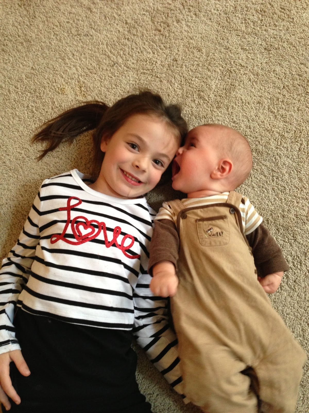 This one really made her giggle because it looks like Blake is screaming in her ear...really he was trying to eat her ear (he wasn't making a sound)!