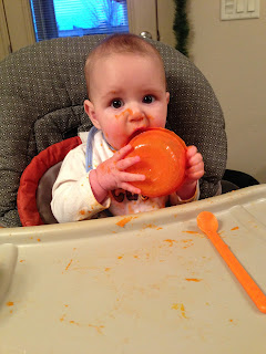 Blake isn't quite sure what to think of solids yet, but he does like playing and making a mess!